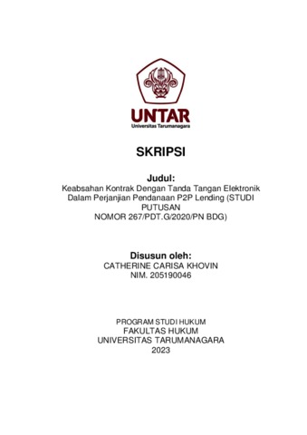 Khovin, Catherine Carisa (2023) Keabsahan Kontrak Dengan Tanda Tangan Elektronik Dalam Perjanjian Pendanaan P2P Lending (STUDI PUTUSAN NOMOR 267/PDT.G/2020/PN BDG). Skripsi thesis, Universitas Tarumanagara.