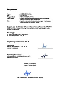 Widjaja, Sudono (2023) Sistem informasi monitoring murid oleh guru dengan orangtua berbasis web dan mobile. Skripsi thesis, Universitas Tarumanagara.