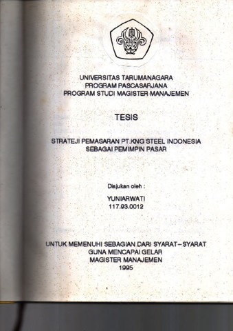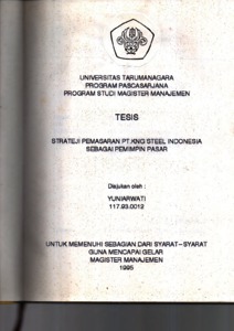 Yuniarwati, Yuniarwati (1995) Strateji Pemasaran PT.King Steel Indonesia sebagai Pemimpin Pasar. Masters thesis, Universitas Tarumanagara.