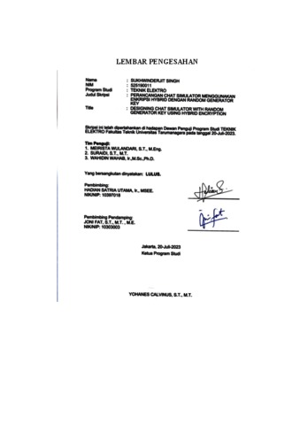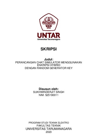 Singh, Sukhwinderjit (2023) Perancangan chat simulator menggunakan enkripsi hybrid dengan random generator key. Skripsi thesis, Universitas Tarumanagara.