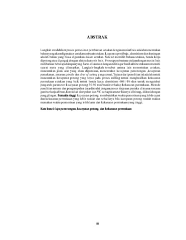 Thomas, Felix (2023) Pengaruh kecepatan potong terhadap kualitas produk mold pada proses milling (TM - 1325). Skripsi thesis, Universitas Tarumanagara.