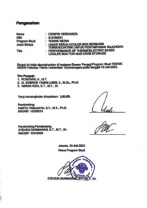 Verdianza, Crispin (2023) Unjuk kerja cooler box berbasis termoelektrik untuk penyimpanan rajungan (TM - 1342). Skripsi thesis, Universitas Tarumanagara.