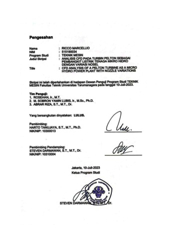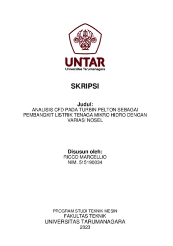 Marcellio, Ricco (2023) Analisis cfd pada turbin pelton sebagai pembangkit listrik tenaga mikro hidro dengan variasi nosel (TM - 1343). Skripsi thesis, Universitas Tarumanagara.