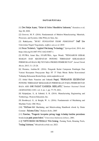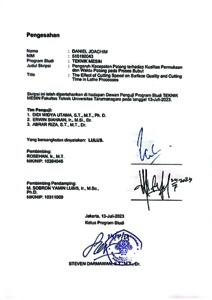 Joachim, Daniel (2023) Pengaruh kecepatan potong terhadap kualitas permukaan dan waktu potong pada proses bubut (TM - 1346). Skripsi thesis, Universitas Tarumanagara.