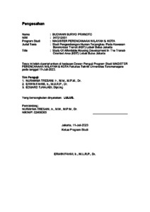 Pranoto, Budiwan Suryo (2023) Studi pengembangan hunian terjangkau pada kawasan berorientasi transit (kbt) Lebak Bulus Jakarta. Masters thesis, Universitas Tarumanagara.