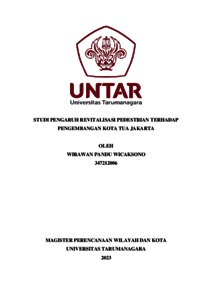 Wicaksono, Wirawan Pandu (2023) Studi pengaruh revitalisasi pedestrian terhadap pengembangan kota tua Jakarta. Masters thesis, Universitas Tarumanagara.