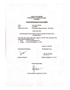 Winata, Alivia Putri (2023) Studi penerapan konsep transit oriented communities di stasiun tenjo, kabupaten Bogor. Skripsi thesis, Universitas Tarumanagara.