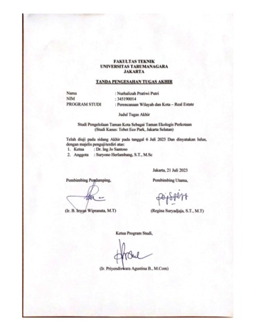 Putri, Nurhalizah Pratiwi (2023) Studi pengelolaan taman kota sebagai taman ekologis perkotaan (studi kasus: Tebet Eco Park, Jakarta Selatan). Skripsi thesis, Universitas Tarumanagara.