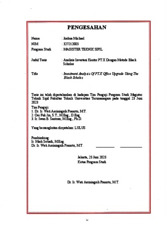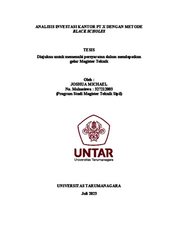Michael, Joshua (2023) Analisis investasi kantor pt. x dengan metode black scholes. Masters thesis, Universitas Tarumanagara.