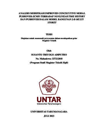 Adiputro, Susanto Triyogo (2023) Analisis modifikasi improved concecutive modal pushover (icmp) terhadap nonlinear time history dan pushover dalam model bangunan 2-d multi storey. Masters thesis, Universitas Tarumanagara.