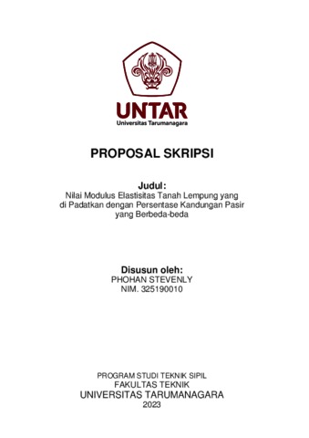 Stevenly, Phohan (2023) Nilai modulus elastisitas tanah lempung yang di padatkan dengan persentase kandungan pasir yang berbeda-beda. Skripsi thesis, Universitas Tarumanagara.