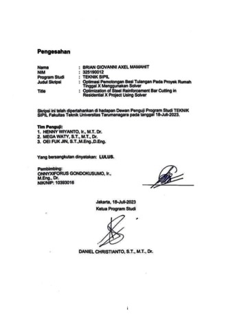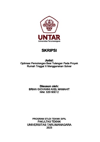 Mamahit, Brian Giovanni Axel (2023) Optimasi pemotongan besi tulangan pada proyek rumah tinggal x menggunakan solver. Skripsi thesis, Universitas Tarumanagara.