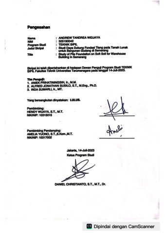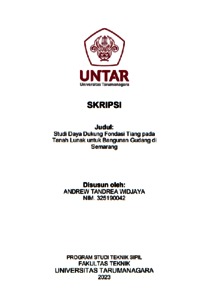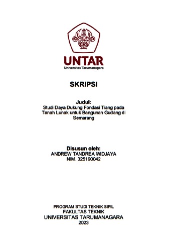 Widjaya, Andrew Tandrea (2023) Studi daya dukung fondasi tiang pada tanah lunak untuk bangunan gudang di Semarang. Skripsi thesis, Universitas Tarumanagara.