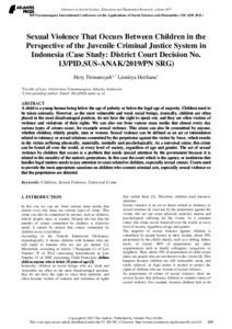 Firmansyah, Hery and Herfiana, Lionitya (2021) Sexual Violence That Occurs Between Children in the Perspective of the Juvenile Criminal Justice System in Indonesia (Case Study District Court Decision No. 13PID.SUS-ANAK2019PN SRG). TICASH 2021.