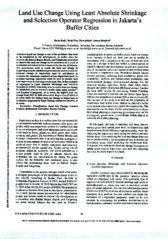 Devin Budi, Pertama and Dyah Erny Herwindiati, Kedua and Janson Hendryli, Ketiga Land Use Change Using Least Absolute Shrinkage and Selection Operator Regression in Jakarta's Buffer Cities. Land Use Change Using Least Absolute Shrinkage and Selection Operator Regression in Jakarta's Buffer Cities.