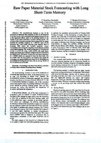 Febryo Kurniawan, Pertama and Dyah Erny Herwindiati, Kedua and Manatap Dolok Lauro, Ketiga Raw Paper Material Stock Forecasting with Long Short-Term Memory. Raw Paper Material Stock Forecasting with Long Short-Term Memory.