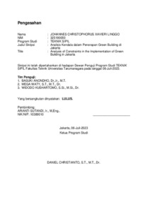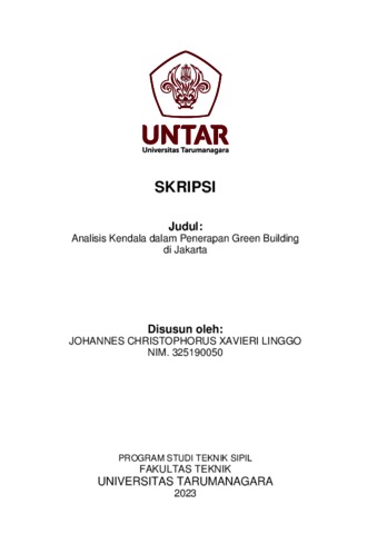 Linggo, Johannes Christophorus Xavieri (2023) Analisis kendala dalam penerapan green building di Jakarta. Skripsi thesis, Universitas Tarumanagara.