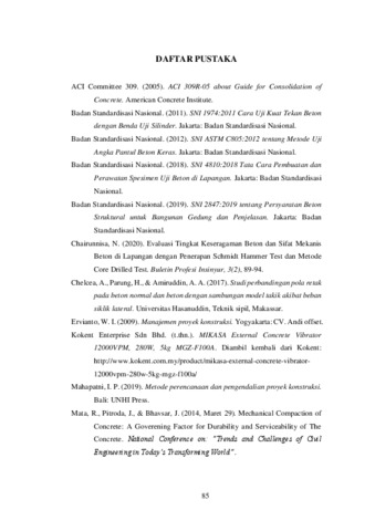 digunakan, termasuk beton yang menjadi salah satu unsur penting dalam struktur bangunan. Hal tersebut dikarenakan konstruksi beton sangat rawan terhadap retak, munculnya rongga, agregat kasar yang memisah dari campuran beton (segregasi), dan banyaknya air yang muncul pada permukaan beton (bleeding) sehingga dibutuhkan penanganan terhadap konstruksi beton seperti chipping and concreting, strengthening, grouting, dan patching or sealing. Oleh karena itu, dilakukan studi kasus pada proyek konstruksi X dimana terdapat beton yang berongga, retak, segregasi, serta terlihat tulangan struktur di beberapa tempat pada bagian kolom, balok dan pelat lantai 2 dan pelat lantai 3 yang menyebabkan perlunya pembongkaran. Studi ini dilakukan untuk mengetahui penyebab dari kegagalan beton lantai 2 dan lantai 3. Dari hasil studi diperoleh kesimpulan bahwa adanya nilai kuat tekan beton yang tidak memenuhi kuat rencana sebesar fc’ 30 MPa berdasarkan hasil dari core drill test pada balok, kolom, dan pelat lantai 2. Sedangkan untuk kegagalan pada lantai 3 disebabkan oleh lamanya waktu perjalanan truck mixer dari batching plant ke proyek, pelaksanaan pengecoran dan proses pemadatan yang mendekati waktu setting beton menyebabkan beton sulit diratakan dengan vibrator. Kata kunci: beton, kegagalan beton, pembongkaran, kuat tekan, truck mixer, setting beton, pemadatan
