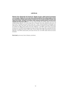 Kekuatan beton dipengaruhi oleh banyak hal. Sebagian besarnya adalah material penyusunnya serta perawatan. Tujuan dari perawatan beton adalah memelihara beton dalam keadaan tertentu pasca-pembukaan bekisting supaya optimasi kekuatan beton bisa dicapai mendekati kekuatan yang sudah direncanakan. Penelitian ini bertujuan untuk mengenali pengaruh metode perawatan beton terhadap kuat tekan beton. Mutu Beton rencana adalah 20 Mpa dan 30 MPa. Benda uji berbentuk silinder dengan diameter 10 cm dan tinggi 20 cm. Pengujian kuat tekan dilakukan pada umur 14 dan 28 hari. Perlakuan perawatan beton terdiri dari 3 variasi yaitu perendaman, penyiraman, dan tidak dirawat. Besar kuat tekan yang diperoleh dari penelitian ini untuk beton mutu 20 MPa umur 28 adalah 9,74 MPa untuk metode perawatan dibiarkan, 11,44 MPa untuk metode perawatan disiram, dan 16,39 MPa untuk metode perawatan direndam. Besar kuat tekan yang diperoleh dari penelitian ini untuk beton mutu 30 MPa umur 28 hari adalah 20,53 MPa untuk metode perawatan dibiarkan, 30,34 MPa untuk metode perawatan disiram, dan 32,32 MPa untuk metode perawatan direndam. Kata kunci: perawatan, beton, kekuatan, penekanan