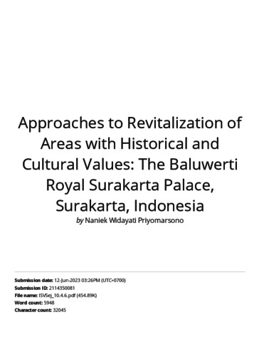 Turnitin Approaches to Revitalization of Areas with Historical and Cultural Values_ The Baluwerti Royal Surakarta Palace, Surakarta, Indonesia(1).pdf Download (2MB) | Preview |