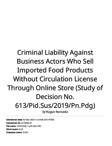 Criminal Liability Against Business Actors Who Sell Imported Food Products Without Circulation License.pdf Download (2MB) | Preview |