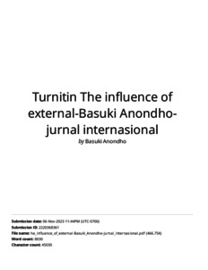 Basuki Anondho, Turnitin Turnitin The influence of external-Basuki Anondho-jurnal internasional(1). Turnitin The influence of external-Basuki Anondho-jurnal internasional(1).