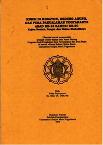 Eddy Supriyatna, Tunggal KURSI DI KERATON, GEDUNG AGUNG, DAN PURA PAKUALAMAN YOGYAKARTA ABAD KE-18 SAMPAI KE-20 Kajian Bentuk, Fungsi, dan Makna Simboliknya. KURSI DI KERATON, GEDUNG AGUNG, DAN PURA PAKUALAMAN YOGYAKARTA ABAD KE-18 SAMPAI KE-20 Kajian Bentuk, Fungsi, dan Makna Simboliknya.