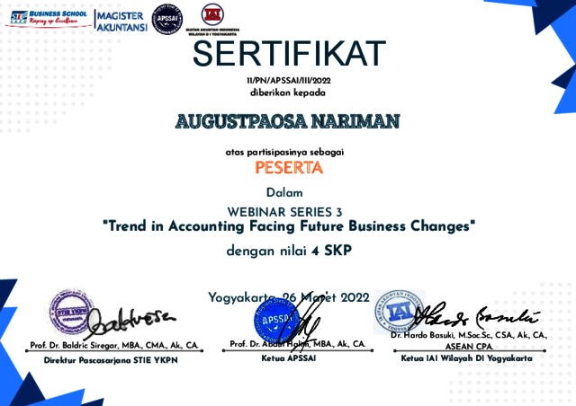 augustpaosa, Penunjang (2022) Sertifikat Peserta Webinar 2022. Sertifikat Peserta Webinar 2022.