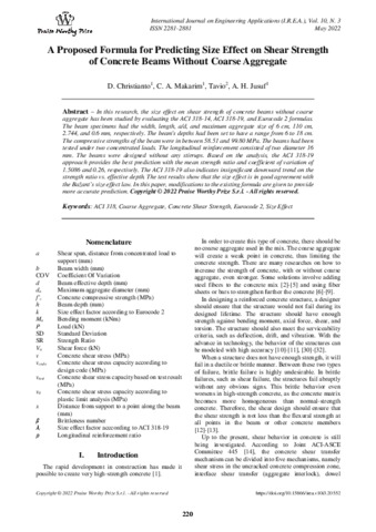 Daniel Christianto, Pertama A Proposed Formula for Predicting Size Effect on Shear Strength of Concrete Beams Without Coarse Aggregate. A Proposed Formula for Predicting Size Effect on Shear Strength of Concrete Beams Without Coarse Aggregate.