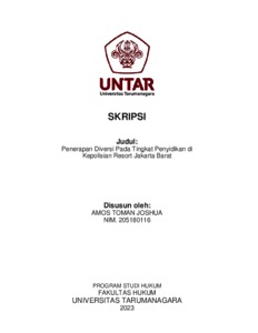 Joshua, Amos Toman (2023) Penerapan Diversi Pada Tingkat Penyidikan di Kepolisian Resort Jakarta Barat. Skripsi thesis, Universitas Tarumanagara.