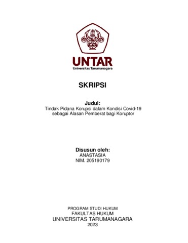 Anastasia, Anastasia (2023) Tindak Pidana Korupsi dalam Kondisi Covid-19 sebagai Alasan Pemberat bagi Koruptor. Skripsi thesis, Universitas Tarumanagara.