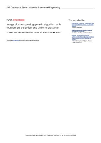 Gevin Valerian, Pertama and Tri Sutrisno, Kedua and Dyah E. Herwindiati, Ketiga Image clustering using genetic algorithm with tournament selection and uniform crossover. Image clustering using genetic algorithm with tournament selection and uniform crossover.