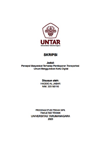 Jabar, Haddid Al (2023) Persepsi masyarakat terhadap pembayaran transportasi umum menggunakan kartu digital. Skripsi thesis, Universitas Tarumanagara.