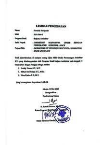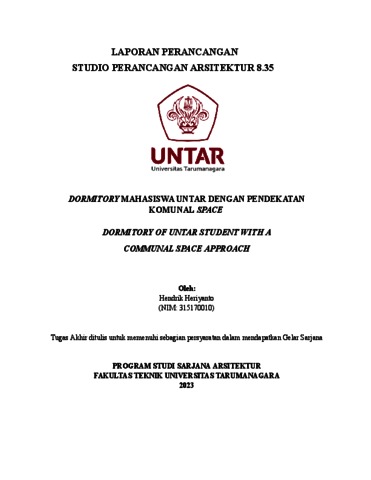 Heriyanto, Hendrik (2023) Dormitory mahasiswa UNTAR dengan pendekatan komunal space. Skripsi thesis, Universitas Tarumanagara.