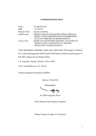 Karunia, Yoseph (2023) Perancangan wadah pelatihan tenaga kerja untuk meningkatkan kompetensi lulusan SMK/SMA di Kemanggisan. Skripsi thesis, Universitas Tarumanagara.