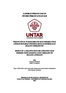 Hermindo, Canniago (2023) Perancangan wadah kreatif bagi pekerja film animasi pengidap insomnia dengan pendekatan healing therapeutic. Skripsi thesis, Universitas Tarumanagara.