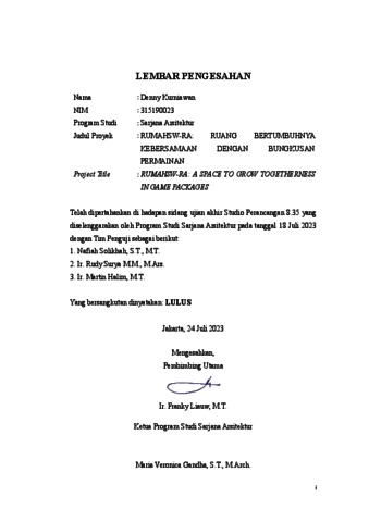 Kurniawan, Denny (2023) Rumahsw-ra: ruang bertumbuhnya kebersamaan dengan bungkusan permainan. Skripsi thesis, Universitas Tarumanagara.