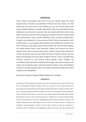 Dalam melihat perkembangan yang terjadi di Kawasan Glodok hingga kini terjadi degradasi budaya Tionghoa yang diakibatkan beberapa aspek masa lampau, dan tidak terlepas juga dari peran generasi muda. Melihat apa yang ada sekarang dengan masih adanya ketahanan kebudayaan Tionghoa dapat dilihat empati akan masuk dalam hal nilai kebudayaan yang diwariskan ke generasi muda dan manjadi pembelajaran untuk semua lapisan masyarakat yang tertarik dalam lingkup hal yang lebih modernisme sebagai bentuk nilai pembaharuannya. Peran arsitektur dibutuhkan dalam berempati terhadap budaya Tionghoa yang terdegradasi di kawasan pecinan Glodok. Metode yang digunakan untuk meneliti perihal isu yang diangkat ialah campuran yakni kualitatif dan kuantitatif Nilai esensi kebudayaan yang nantinya dapat tertuang sebagai nilai substansi dalam bangunan dan empati terhadap budaya untuk dilestarikan. Empati yang dirasakan dari adanya degradasi budaya pada kawasan tersebut nantinya ditujukan kepada pelaku kebudayaan, orang tua dan generasi kini yang sulit melihat nilai budaya Tionghoa di Jakarta. Pencarian didasari perkembangan awal mula sejarah Tionghoa di Jakarta. Tapak yang dipilih dapat merespon mengenai isu yang diangkat tentang degradasi budaya Tionghoa dan permasalahan yang terjadi dalam lingkup Glodok sehingga tapak dapat mempunyai nilai empati yang disampaikan dalam mendesain bangunan. Program ruang yang dihasilkan merespon isu tentang degradasi budaya yang terjadi, pengenalan dan pelestarian budaya sebagai hal untuk diempatikan. Kata kunci: Degradasi; Empati; Glodok; Kebudayaan; Tionghoa