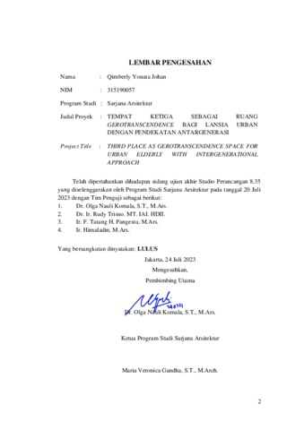 Johan, Qimberly Yonata (2023) Tempat ketiga sebagai ruang gerotranscendence bagi lansia urban dengan pendekatan antargenerasi. Skripsi thesis, Universitas Tarumanagara.