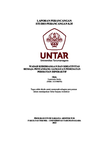 Josita, Laurencia (2023) Wadah kebersamaan dan kreativitas remaja penyandang gangguan pemusatan perhatian hiperaktif. Skripsi thesis, Universitas Tarumanagara.