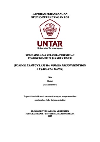 Michael, Michael (2023) Redesain lapas kelas IIA perempuan pondok bambu di Jakarta Timur. Skripsi thesis, Universitas Tarumanagara.