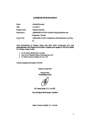 Giovanni, Richard (2023) (re)habilitation: definisi ulang rehabilitasi dan penggunaan narkoba. Skripsi thesis, Universitas Tarumanagara.