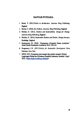 Aktivitas dunia fashion semakin berkembang dan berubah, menjadikannya sebagai sarana untuk mengekspresikan diri seseorang kepada dunia luar. Sebelum masa pandemi covid berlangsung, terjadi fenomena fast-fashion trend yang mencuat, dimana produksinya telah berkontribusi pada peningkatan dan menyisakan limbah kain perca yang tidak dapat digunakan kembali. Tahun 2019 di DKI Jakarta, limbah perca berdampak ke lingkungan Pantai Timur Ancol, Pademangan yang ditemukan di bibir dan perairan pantai. hal ini mengkhawatirkan karena dampak negatifnya terhadap ekosistem lingkungan dan kesehatan manusia yang tinggal disekitarnya. Dalam mengatasi permasalahan tersebut, program arsitektur menginisiasi penggunaan kain perca sebagai sumber daya melalui pengolahan, produksi, dan penjualan pakaian. Program ini bertujuan untuk mengubah limbah perca menjadi bahan yang memiliki nilai tambah. Melalui metode perancangan kualitatif dan pendekatan edukatif, program arsitektur ini dibentuk untuk memberikan pemahaman serta inspirasi kepada generasi muda dalam berinovasi menciptakan produk unik melalui pemanfaatan limbah perca. Keberadaan program ini, diharapkan adanya kesadaran akan pentingnya pengelolaan limbah perca menjadi sebuah kebaharuan. Program juga bertujuan untuk membangkitkan semangat inovasi dan kreativitas di kalangan masyarakat. Pemanfaatan limbah perca sebagai sumber daya yang berharga dengan mendorong adopsi praktik ramah lingkungan dalam industri fashion. Melalui kolaborasi antara generasi muda dan masyarakat sebagai produsen dan konsumen, tercipta kesadaran kolektif untuk menjaga kelestarian lingkungan dan menciptakan sebuah industri fashion yang bertanggung jawab dan berwawasan masa depan. Kata kunci: Edukasi; Fashion; Inovasi; Limbah; Perca