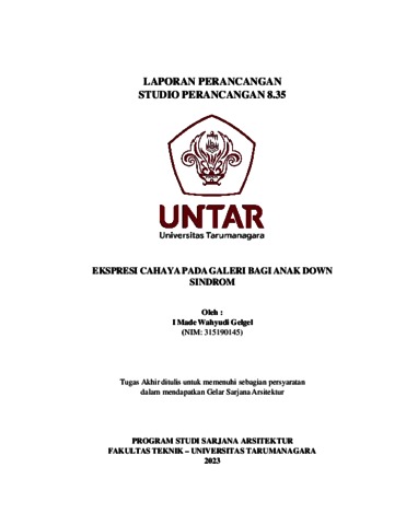 Gelgel, I Made Wahyudi (2023) Ekspresi cahaya pada galeri bagi anak down sindrom. Skripsi thesis, Universitas Tarumanagara.