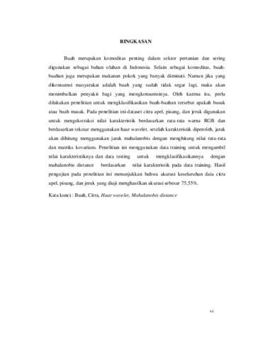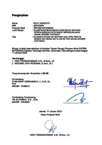 Handoyo, Rico (2023) Klasifikasi buah busuk dan buah matang berdasarkan data image menggunakan mahalanobis distance. Skripsi thesis, Universitas Tarumanagara.