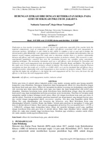 Nathania Tanurezal, Pertama and Raja Oloan Tumanggor, Kedua HUBUNGAN EFIKASI DIRI DENGAN KETERIKATAN KERJA PADA GURU DI SEKOLAH INKLUSI DI JAKARTA. HUBUNGAN EFIKASI DIRI DENGAN KETERIKATAN KERJA PADA GURU DI SEKOLAH INKLUSI DI JAKARTA.