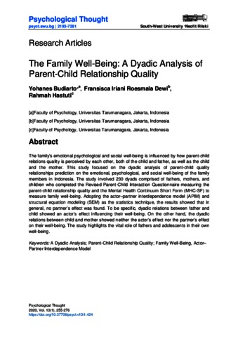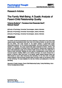 Yohanes Budiarto, Pertama and Fransisca Iriani Roesmala Dewib, Kedua and Rahmah Hastutic, Ketiga The Family Well-Being: A Dyadic Analysis of Parent-Child Relationship Quality. The Family Well-Being: A Dyadic Analysis of Parent-Child Relationship Quality.