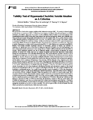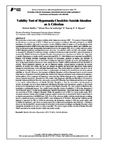 Felinda Stefika, Pertama and Adiasri Toto A, Kedua and Tommy Y S Suyasa, Ketiga Validity Test of Hypomania Checklist: Suicide Ideation as A Criterion. Validity Test of Hypomania Checklist: Suicide Ideation as A Criterion.