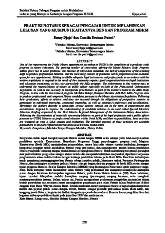 (NOMOR 11) PRAKTISI NOTARIS SEBAGAI PENGAJAR UNTUK MELAHIRKAN LULUSAN YANG MUMPUNI.pdf Download (267kB) | Preview |