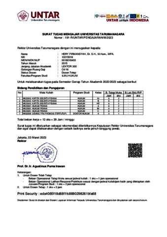 Firmansyah, Hery Surat Tugas Mengajar Universitas Tarumanagara. Universitas Tarumanagara.